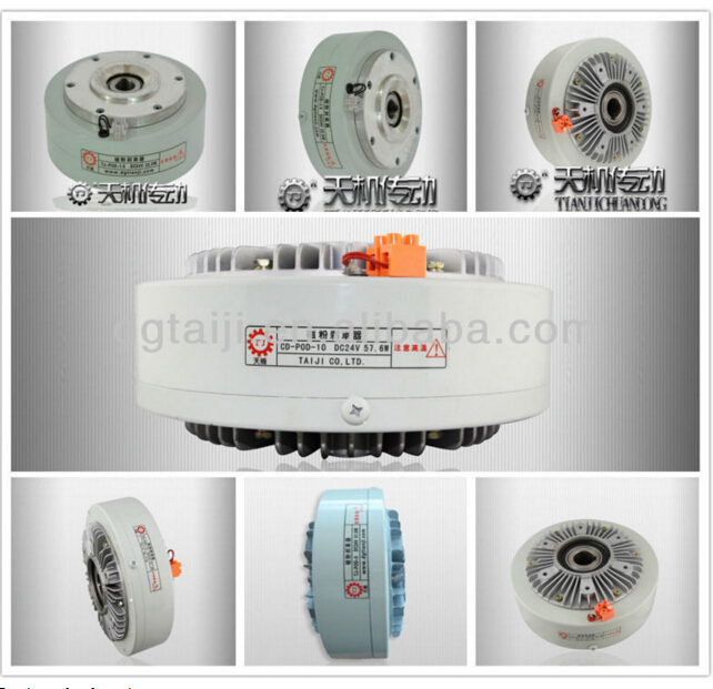东莞天机传动空心磁粉刹车器厂家(孔式磁粉刹车器)是由传动单元(输入轴)和从动单元(输出轴)合并而成。在两组单元之间的空间,填有粒状的磁粉(休积大约40微米)。当磁性线圈不导电时,转矩不会从传动轴传于从动轴,但如将线圈电磁通电,就由于磁力的作用而吸引磁粉产生硬化现象,在连继滑动之间会把转矩传达。 磁粉制动器是一种性能优越的自动控制元件。它以磁粉为工作介质,以激磁电流为控制手段,达到控制制动或传递转矩的目的。其输出转矩与激磁粉电流呈良好的线性关系而与转速或滑差无关,并具有响应速度快,结构简单的优点。
